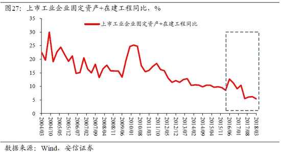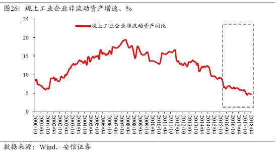 更重要的是,從工業(yè)企業(yè)和上市公司的數(shù)據(jù)看,由于持續(xù)的投資減速,企業(yè)總資產(chǎn)的增速大幅降低,其趨勢水平在2016年以來穩(wěn)定在7%以下,未來很長時間來看可能繼續(xù)如此。