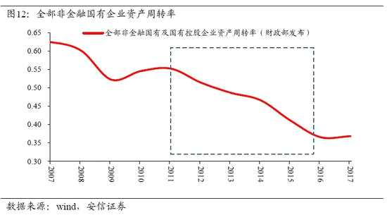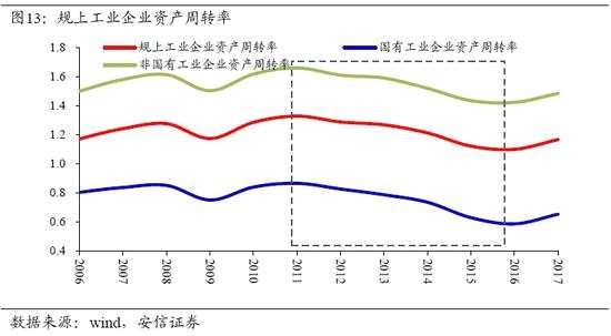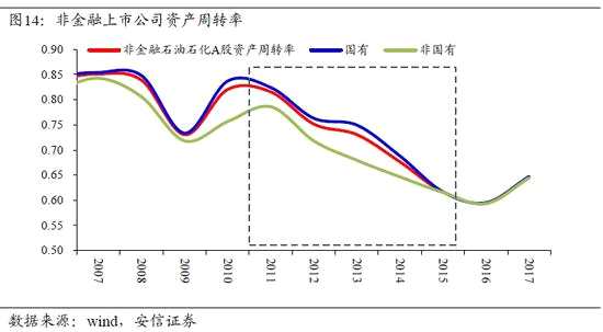 研究不同口徑的企業(yè)資產(chǎn)周轉(zhuǎn)率數(shù)據(jù)顯示,2011年以來,所有類別企業(yè)的周轉(zhuǎn)率都經(jīng)歷了持續(xù)和大幅度的下降,并在2016年達到前所未見的水平,這成為推動宏觀杠桿率上升的重要原因。