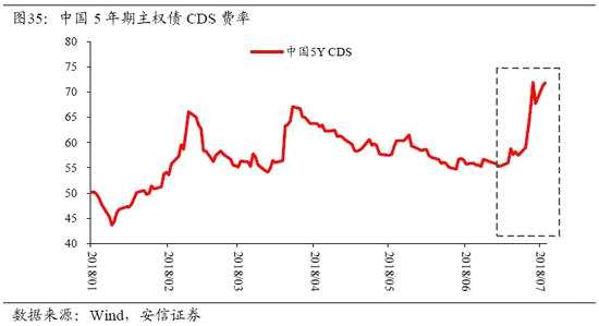 下圖顯示了中國美元主權債的違約風險。這一風險最近明顯上升,與中國股市加速下跌同步出現(xiàn),需要引起注意。
