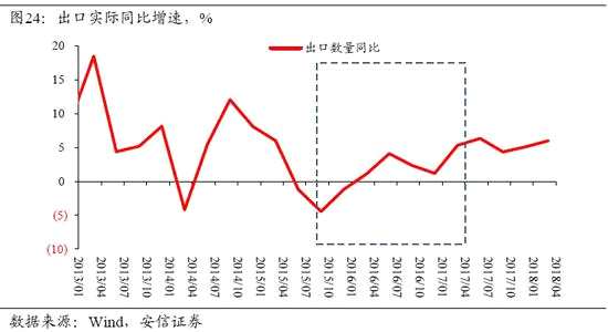 但是,此前財政去杠桿的積極影響仍然不可忽視。例如,在今年全球經(jīng)濟減速的背景下,中國實際出口繼續(xù)加速,這與此前的匯率貶值似乎存在關聯(lián)。