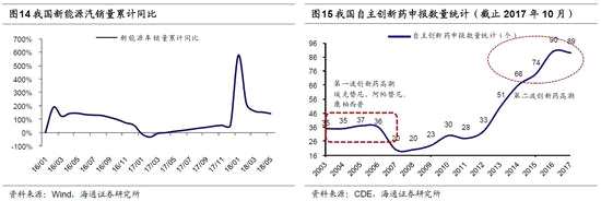供給側(cè)改革重心轉(zhuǎn)向“一補(bǔ)”,助力高新技術(shù)產(chǎn)業(yè)發(fā)展。2015年底中央提出供給側(cè)結(jié)構(gòu)性改革,2016-17年政策著力點(diǎn)在“三去”方面,政策向傳統(tǒng)行業(yè)傾斜,如PPP、棚改等等,目的是實(shí)現(xiàn)穩(wěn)中求進(jìn)的“穩(wěn)”。在這一目標(biāo)實(shí)現(xiàn)后,2018年開始政策著力點(diǎn)慢慢偏向“一補(bǔ)”,政策開始向新經(jīng)濟(jì)傾斜,如5G投資、半導(dǎo)體、創(chuàng)新藥、新能源汽車等,這是為了實(shí)現(xiàn)穩(wěn)中求進(jìn)的“進(jìn)”。2018年3月華為率先完成了基于3GPP的5GNSA(Non-Stand Alone,非獨(dú)立組網(wǎng))C-Band設(shè)備功能測(cè)試,我們預(yù)計(jì)在2019-2023年期間5G方面的無(wú)線設(shè)備投資規(guī)模為0.9萬(wàn)億,光網(wǎng)絡(luò)為0.3萬(wàn)億,合計(jì)達(dá)到1.2萬(wàn)億,投資峰值將出現(xiàn)在2021年。2018年4月24日,國(guó)家發(fā)改委、財(cái)政部聯(lián)合發(fā)布了《關(guān)于降低部分無(wú)線電頻率占用費(fèi)標(biāo)準(zhǔn)等有關(guān)問題的通知》,通知表示,對(duì)5G公眾移動(dòng)通信系統(tǒng)頻率占用費(fèi)標(biāo)準(zhǔn)實(shí)行“頭三年減免,后三年逐步到位”的優(yōu)惠政策,這將利于加快5G的商用時(shí)代來(lái)臨,5G技術(shù)滲透將利于大數(shù)據(jù)、計(jì)算機(jī)、無(wú)人駕駛和AR等新興技術(shù)的運(yùn)用推廣。2014年10月14日,工業(yè)和信息化部辦公廳宣布,國(guó)家集成電路產(chǎn)業(yè)投資基金已于9月24日正式設(shè)立。截止2017年底,大基金累計(jì)有效決策投資67個(gè)項(xiàng)目,累計(jì)項(xiàng)目承諾投資額1188億元,實(shí)際出資818億元,分別占一期募資總額的86%和61%。據(jù)SEMI數(shù)據(jù),中國(guó)本土半導(dǎo)體產(chǎn)業(yè)的設(shè)備投資將在2018-20年達(dá)到高峰,分別為108、110、172億美元,并預(yù)計(jì)17年后內(nèi)資廠商將主導(dǎo)大陸晶圓廠的建設(shè)。據(jù)《國(guó)家人口發(fā)展規(guī)劃(2016-2030年)》,2021年-2030年我國(guó)60歲及以上老年人口增長(zhǎng)速度將明顯加快,到2030年占比將達(dá)到25%左右,人口老齡化趨勢(shì)將支撐對(duì)醫(yī)藥服務(wù)的需求。未來(lái)國(guó)內(nèi)制藥產(chǎn)業(yè)也將從仿制向創(chuàng)新逐漸過渡,預(yù)計(jì)將有15-20個(gè)自主新藥將在2018-2020年期間以最低每年4-5個(gè)的速度持續(xù)密集獲批。根據(jù)中汽協(xié)數(shù)據(jù),2018年1-5月新能源汽車?yán)塾?jì)產(chǎn)銷量均完成32.8萬(wàn)輛,較去年同期分別增長(zhǎng)122.9%和141.6%,預(yù)計(jì)18年新能源汽車銷量可達(dá)到100萬(wàn)輛,市場(chǎng)滲透率達(dá)到3%。