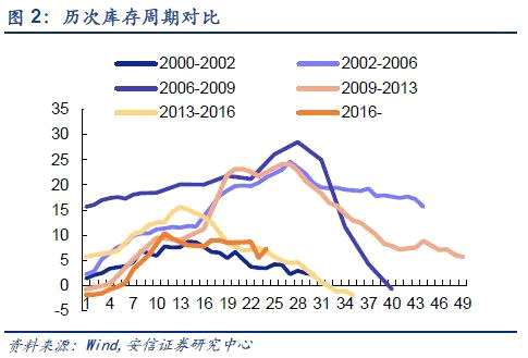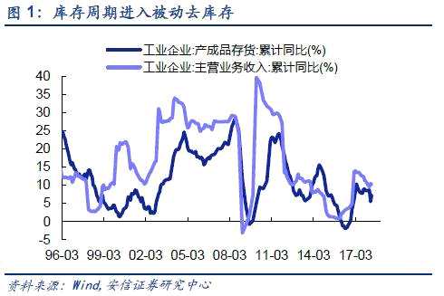 一、經(jīng)濟(jì)韌性短期較強(qiáng),且中期有望迎來(lái)補(bǔ)庫(kù)存周期。始于2016年6月的一輪庫(kù)存周期已經(jīng)進(jìn)入被動(dòng)去庫(kù)存階段,工業(yè)企業(yè)收入同比企穩(wěn),而產(chǎn)成品庫(kù)存同比下行??紤]到這輪庫(kù)存周期與2000-2002年(30個(gè)月)類似,均是在供給側(cè)改革背景下展開,都呈現(xiàn)偏短偏平特征,可能今年年底本輪庫(kù)存周期將結(jié)束,新一輪補(bǔ)庫(kù)周期開啟。