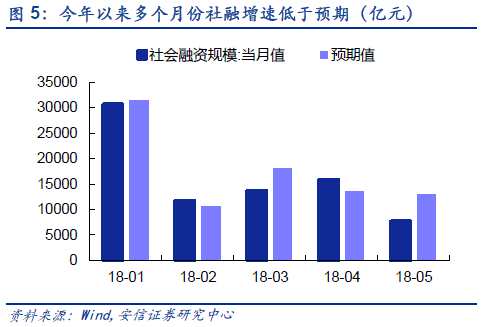 四、融資環(huán)境呈現(xiàn)邊際改善,信用市場(chǎng)壓力預(yù)計(jì)趨緩。今年以來(lái),伴隨金融監(jiān)管趨嚴(yán),去杠桿節(jié)奏有所加快,表外資金不斷回表,社融增速大幅下滑。多個(gè)月份社融增速明顯低于預(yù)期,且與預(yù)期落差呈現(xiàn)擴(kuò)大趨勢(shì)。5月新增社融規(guī)模中債券融資-434億元,較4月的3925億元環(huán)比下降4359億元,成為拖累社融的重要因素之一。依據(jù)萬(wàn)得債券發(fā)行數(shù)據(jù),6月信用債發(fā)行量達(dá)到3880億元,較5月的3679億元增加201億元,信用債凈融資規(guī)模由負(fù)轉(zhuǎn)正,達(dá)到456億元。另外一方面,伴隨央行定向降準(zhǔn),前期信用利差上行趨勢(shì)趨緩,企業(yè)融資難融資貴現(xiàn)象有所緩解,未來(lái)社融有望邊際改善。