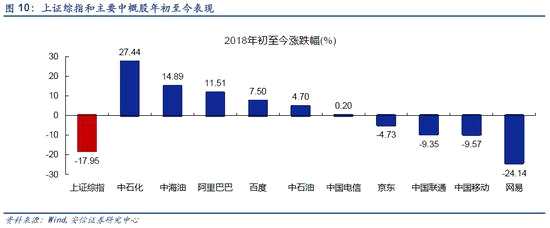 雖然上證綜指今年以來(lái)出現(xiàn)明顯跌幅,但同樣表征中國(guó)經(jīng)濟(jì)的在美股上市的主要中概股今年表現(xiàn)總體良好,這可能也與不同市場(chǎng)對(duì)于貿(mào)易摩擦對(duì)中國(guó)經(jīng)濟(jì)的影響評(píng)估不同,我們認(rèn)為A股市場(chǎng)投資者可能預(yù)期過(guò)于悲觀。
