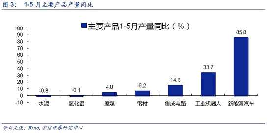 二、新舊動(dòng)能切換勢(shì)頭顯露。1-5月,新能源汽車產(chǎn)量同比增長(zhǎng)85.8%,工業(yè)機(jī)器人(300024,股吧)增長(zhǎng)33.7%,集成電路增長(zhǎng)14.6%。此外,太陽(yáng)能(000591,股吧)電池、光纖、民用無(wú)人機(jī)等新興產(chǎn)品也都保持快速增長(zhǎng)。發(fā)改委數(shù)據(jù)顯示,軟件和信息服務(wù)業(yè)用電量同比增長(zhǎng)66.05%,遠(yuǎn)高于同期全社會(huì)和第三產(chǎn)業(yè)用電量增速,也反應(yīng)了新經(jīng)濟(jì)仍保持迅猛發(fā)展的勢(shì)頭。