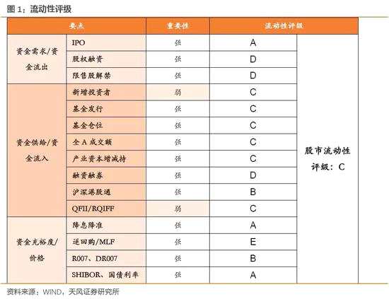摘要: 【天風(fēng)策略】定向降準(zhǔn)釋放流動(dòng)性,北上資金重回凈流入來(lái)源:分析師徐彪一周流動(dòng)性評(píng)級(jí)下表選取關(guān)乎股市流動(dòng)性的15個(gè)指標(biāo),強(qiáng)指標(biāo)10分,ABCDE分別對(duì)應(yīng)10分、8分、6分、4分、2分;弱指標(biāo)減半,ABCD