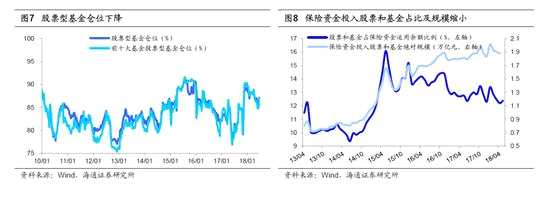 資管新規(guī)下銀行相關(guān)業(yè)務(wù)收縮,股市微觀資金供求惡化。我們從投資者結(jié)構(gòu)入手分析看看股市中哪些資金在退,為何而退?截止18Q1 A股投資者結(jié)構(gòu)包括(根據(jù)A股自由流動市值占比):散戶投資者43.4%,一般法人23.8%,全部基金8.4%,保險和社保7.9%,陽光私募3.9%,R/QFII3.6%,陸港通北上資金1.8%,券商1.3%。占比最大的散戶熱情在下降,4、5、6月周均新增開戶數(shù)分別為22.3、24.6、24.7萬人,年初以來周均26.3萬人,2017、2016年周均值為31.7萬人、37.9萬人。公募基金在減倉,股票型基金倉位從1月高點88.9%降至6月低點85.8%,前十大股票型基金倉位從89.91%降至85.1%。保險投向股市的錢在收縮,保險資金運用余額中股票和基金占比從2018年1月高點13.38%降至5月的12.38%,投入股票和基金的絕對規(guī)模從1月高點2.01萬億元降至2018年5月1.92萬億元。如果說這些資金是在市場下跌過程中風(fēng)險偏好提升導(dǎo)致的正常減倉行為,那么與銀行理財相關(guān)的資金則呈現(xiàn)過去兩年沒有出現(xiàn)過的撤退狀態(tài)。截至2017年銀行理財規(guī)模29.5萬億,權(quán)益類投資大約10%,其中以基金專戶、基金子專戶、私募等委外形式的直接投資股市資金占比大約20%,剩余的2萬多億為股權(quán)質(zhì)押、結(jié)構(gòu)化產(chǎn)品配資等名股實債類資金。資管新規(guī)發(fā)布后,銀行表外資金轉(zhuǎn)表內(nèi),加之理財細(xì)則未落地,出于謹(jǐn)慎性原則一些產(chǎn)品到期后沒能續(xù)上,體現(xiàn)為銀行理財權(quán)益相關(guān)資金撤出,這一點從相關(guān)機構(gòu)資產(chǎn)管理規(guī)模的變化可以得到印證。專戶規(guī)模在萎縮,基金公司專戶業(yè)務(wù)資產(chǎn)管理規(guī)模從2017年11月高點5.04萬億元持續(xù)降至2018年4月4.91萬億元,基金子公司從7.63萬億元降至6.65萬億元。私募也在縮減,私募證券投資基金管理規(guī)模從18年初高點2.61萬億持續(xù)降至6月2.53萬億,另一方面今年私募清盤成為常態(tài),年初至5月月均證券類私募產(chǎn)品清盤數(shù)為675只,而2017年同期月均證券類私募產(chǎn)品清盤數(shù)為498只。信托投向股市的資金也在撤出,根據(jù)中國信托業(yè)協(xié)會《2018年1季度中國信托業(yè)發(fā)展評析》,“全國68家信托公司受托資產(chǎn)規(guī)模為25.61萬億元,較2017年4季度末下降2.41%,為近兩年來首次負(fù)增長;同比增速較2017年4季度末的29.8%進(jìn)一步放緩至16.6%。截至2018年1季度末,證券投資信托規(guī)模為2.99萬億元,較2017年4季度末下降3.53%,占比為13.86%,較2017年4季度末下降0.29個百分點”。新增股權(quán)質(zhì)押規(guī)模在萎縮,年初至6月月均新增股權(quán)質(zhì)押股數(shù)為210億股,而2017年同期月均新增股權(quán)質(zhì)押股數(shù)為254億股,單月新增股權(quán)質(zhì)押整體規(guī)模從2018年3月高點3394億元持續(xù)降至6月2003億元。資管新規(guī)推出后,配套理財細(xì)則未落地,導(dǎo)致銀行存量資產(chǎn)萎縮的同時,新發(fā)產(chǎn)品受限,進(jìn)而引致包括基金專戶、私募、信托、股權(quán)質(zhì)押等相關(guān)權(quán)益資金撤出,股市微觀流動性遭到破壞。