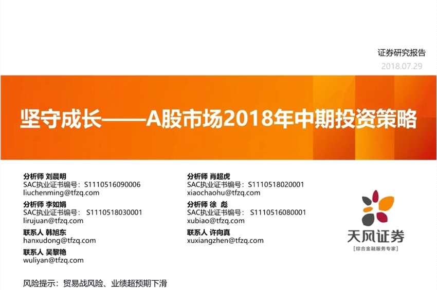 重磅!【天風策略】堅守成長——2018年A股中期投資策略
