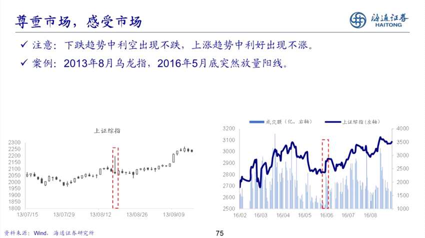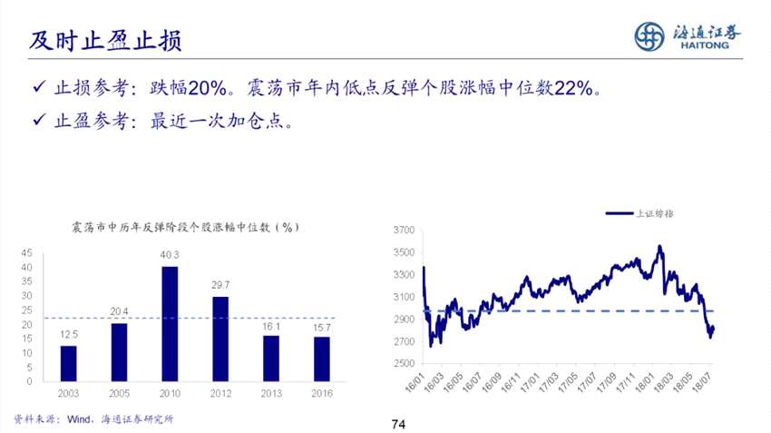 正因此,我們需要用投資紀(jì)律來(lái)約束自己。劉強(qiáng)生前最后一篇文章《對(duì)于這次A股股災(zāi)的幾點(diǎn)反思》中第一條就是 “對(duì)于基本面的過(guò)于執(zhí)著讓我忽視了技術(shù)面的風(fēng)控提示” ,由此可見“投資紀(jì)律是投資者的盔甲!”《海龜交易法則》寫到最受尊崇的交易格言之一是“永遠(yuǎn)要有止損點(diǎn)”。我們嘗試做一個(gè)止損參考:股價(jià)跌幅20%。回顧歷史,以自然年度為分析對(duì)象,剔除單邊上漲的牛市和單邊下跌的熊市,震蕩市年內(nèi)低點(diǎn)出現(xiàn)后,反彈階段個(gè)股漲幅中位數(shù)22%,這預(yù)示著如果前期虧損,后面想通過(guò)反彈將凈值回正,跌幅不能超過(guò)20%。尊重市場(chǎng)、感受市場(chǎng)很重要,下跌趨勢(shì)中利空出現(xiàn)市場(chǎng)不跌,上漲趨勢(shì)中利好出現(xiàn)市場(chǎng)不漲,都要十分小心,我們看兩個(gè)案例。2013年8月16日烏龍指事件,11點(diǎn)05分上證指數(shù)大幅拉升,大盤幾分鐘內(nèi)漲超5%,最高漲幅5.62%,事后看烏龍指是仙人指,70億就足以打飛權(quán)重股,可見盤子非常輕,14年11-12月最終出現(xiàn)了上證50很短時(shí)間的暴漲行情。2016年5月上證綜指經(jīng)過(guò)前期下跌后持續(xù)了兩周的2800點(diǎn)縮量磨底,5月31日在很小的一個(gè)信息影響下(一家外資投行發(fā)報(bào)告預(yù)測(cè)A股將納入MSCI)突然放量大漲,我們當(dāng)時(shí)敏銳地觀察到這個(gè),寫了《重啟多頭思維-20160605》,之后市場(chǎng)從2800點(diǎn)一路上漲到11月底的3300點(diǎn)。