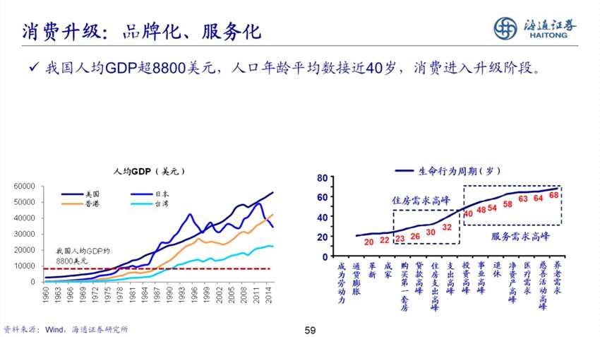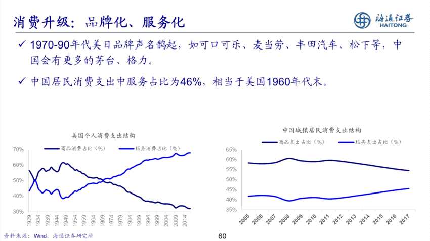第三個(gè)十年后半段是誰(shuí)呢?凱文·凱利說(shuō):“未來(lái)已來(lái),只是尚未流行?!北葼枴どw茨說(shuō):“人們總是高估新技術(shù)出現(xiàn)的第一個(gè)五年,但會(huì)低估第二個(gè)五年?!薄度绾螕渥浆F(xiàn)在的成長(zhǎng)、未來(lái)的藍(lán)籌——新時(shí)代新產(chǎn)業(yè)系列(3)-20180412》中我們分析過(guò)。十九大報(bào)告提出“中國(guó)特色社會(huì)主義進(jìn)入新時(shí)代”,滿足人民美好生活需要的行業(yè)必然成為新時(shí)代的主導(dǎo)產(chǎn)業(yè)。從人口、技術(shù)、政策三個(gè)影響因素看產(chǎn)業(yè)發(fā)展趨勢(shì),第一,從人口層面看,中國(guó)人口平均年齡已增長(zhǎng)到39歲,60歲以上人口占比16.7%,隨著人口平均年齡上升,住房需求逐漸萎縮,投資、醫(yī)療、養(yǎng)老等服務(wù)需求增強(qiáng)。第二,從技術(shù)層面看,繼上世紀(jì)70年代半導(dǎo)體與計(jì)算機(jī)產(chǎn)業(yè)壯大帶動(dòng)上一輪全球技術(shù)浪潮后,2010年前后開始的以信息技術(shù)為代表的新一輪全球技術(shù)浪潮仍在進(jìn)行中,移動(dòng)互聯(lián)在中國(guó)加速滲透,全球工業(yè)4.0進(jìn)一步強(qiáng)調(diào)數(shù)字化、智能化的未來(lái)發(fā)展趨勢(shì),深度學(xué)習(xí)、知識(shí)圖譜的發(fā)展使得人工智能在各項(xiàng)應(yīng)用中都有了大幅提升,同期計(jì)算成本的下降、大數(shù)據(jù)和相關(guān)支撐技術(shù)的發(fā)展,推進(jìn)了智能制造的快速發(fā)展。第三,從政策層面看先進(jìn)制造、新興消費(fèi)均是未來(lái)幾年的政策扶持方向。2015年年底習(xí)總書記提出供給側(cè)結(jié)構(gòu)性改革,簡(jiǎn)單概括為兩步走,第一步是過(guò)去兩年通過(guò)“三去”解決舊經(jīng)濟(jì)的問題,實(shí)現(xiàn)穩(wěn)中求進(jìn)的穩(wěn),第二步是從今年開始向“一補(bǔ)”傾斜,即政府的政策重點(diǎn)從之前的PPP、棚戶區(qū)改造轉(zhuǎn)向5G投資、半導(dǎo)體產(chǎn)業(yè)基金等等。近年來(lái)相關(guān)產(chǎn)業(yè)政策加速落地,先進(jìn)制造方面:2014年國(guó)務(wù)院頒布《國(guó)家集成電路產(chǎn)業(yè)發(fā)展推進(jìn)綱要》,15年印發(fā)《中國(guó)制造2025》,17年印發(fā)《新一代人工智能發(fā)展規(guī)劃的通知》。新興消費(fèi)方面:16年國(guó)務(wù)院印發(fā)《關(guān)于進(jìn)一步擴(kuò)大旅游文化體育健康養(yǎng)老教育培訓(xùn)等領(lǐng)域消費(fèi)的意見》,17年印發(fā)《關(guān)于進(jìn)一步擴(kuò)大和升級(jí)信息消費(fèi)持續(xù)釋放內(nèi)需潛力的指導(dǎo)意見》。18年3月《政府工作報(bào)告》提出:“實(shí)施‘中國(guó)制造2025’,推進(jìn)工業(yè)強(qiáng)基、智能制造、綠色制造等重大工程,先進(jìn)制造業(yè)加快發(fā)展,加快制造強(qiáng)國(guó)建設(shè)”,“推動(dòng)傳統(tǒng)消費(fèi)提檔升級(jí)、新興消費(fèi)快速興起,發(fā)展消費(fèi)新業(yè)態(tài)新模式,積極擴(kuò)大消費(fèi)”。綜合人口、技術(shù)、政策因素,先進(jìn)制造、新興消費(fèi)有望成為新時(shí)代經(jīng)濟(jì)由大變強(qiáng)的主導(dǎo)產(chǎn)業(yè),而這其中必將誕生一批具有國(guó)際競(jìng)爭(zhēng)力的新藍(lán)籌。
