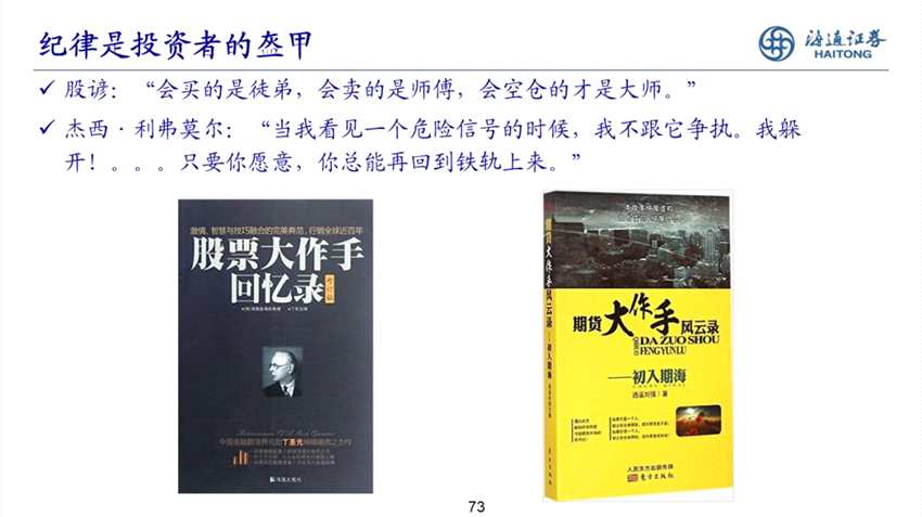 市場(chǎng)很殘酷,理解風(fēng)險(xiǎn),尊重風(fēng)險(xiǎn),這是頂尖交者們的標(biāo)志。2015年股災(zāi)發(fā)生后我反思了很多,寫了《股災(zāi)反思系列1-3》,說(shuō)實(shí)話那一輪牛市我是最早看多的而且非常堅(jiān)定,但是非常遺憾的是,我在5000點(diǎn)的時(shí)候沒有提示風(fēng)險(xiǎn),這曾讓我寢食難安。我當(dāng)時(shí)看了很多書,其中有兩本被我反復(fù)看,一本是杰西·利弗莫爾的傳記《股票大作手回憶錄》,另外一本書是劉強(qiáng)的《期貨大作手風(fēng)云錄》。深刻地體會(huì)到了“會(huì)買的是徒弟,會(huì)賣的是師傅,會(huì)空倉(cāng)的才是大師?!崩ツ獱栒f(shuō):“當(dāng)我看見一個(gè)危險(xiǎn)信號(hào)的時(shí)候,我不跟它爭(zhēng)執(zhí)。我躲開!幾天以后,如果一切看起來(lái)還不錯(cuò),我就再回來(lái)。如果你正沿著鐵軌往前走,看見一輛火車以每小時(shí)60英里的速度向你沖來(lái),或者是聽到遠(yuǎn)處的鳴笛聲,我會(huì)立馬跳下鐵軌讓火車開過(guò)去。它開過(guò)去之后,只要你愿意,你總能再回到鐵軌上來(lái)。”利弗莫爾一生不斷在窮光蛋和億萬(wàn)富翁之間徘徊,他切身的經(jīng)歷領(lǐng)悟了控制風(fēng)險(xiǎn)的重要性,不過(guò)非常遺憾的是,他最后一次賠光財(cái)富時(shí)選擇了自殺,他本可從窮光蛋再次變成億萬(wàn)富翁,但是他厭煩了這種游戲,對(duì)人性的絕望讓他選擇自殺。1720年南海泡沫時(shí),偉大的物理學(xué)家牛頓也投入其中,泡沫破滅時(shí)最終虧損2萬(wàn)英鎊,而他當(dāng)時(shí)年薪只有2000英鎊,牛頓感慨“我可以預(yù)測(cè)天體運(yùn)動(dòng)的軌跡,卻無(wú)法預(yù)測(cè)人性的貪婪。”十幾年后,26歲的大衛(wèi)·休謨寫出一部偉大著作《人性論》,指出“人類不受理性的宰制。人類永遠(yuǎn)無(wú)法克服自身或者他人狹隘的靈魂,人人短視近利,只顧眼前。這就是人性,不要妄想去更改。”