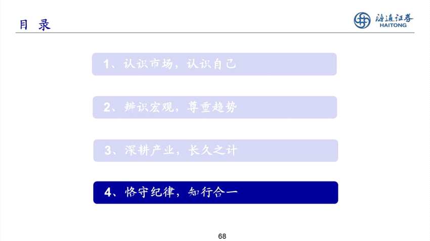 大家好!又到了一年一度的培訓(xùn)會(huì),最近一段時(shí)間我再次審視和梳理自己的研究框架,又有些新的體會(huì)。入行11年,我對(duì)研究的認(rèn)識(shí)有兩個(gè)階段:第一個(gè)階段追求“大而整”,講究框架的完整、指標(biāo)的精細(xì),就像一個(gè)好武青年剛進(jìn)入武林世界時(shí),每一門派的武功都想學(xué),似乎都學(xué)會(huì)后就能打遍天下無(wú)敵手。第二個(gè)階段做到“知輕重”,隨著對(duì)市場(chǎng)認(rèn)識(shí)的深入,領(lǐng)悟了沒有任何一門武功能夠包打天下,任何框架都有優(yōu)和劣,關(guān)鍵是找一個(gè)適合自己的框架,認(rèn)識(shí)并接受它的不足,懂得取舍,做好自己能力圈內(nèi)的事。如果把第一個(gè)境界概括為追求“大我”,第二個(gè)境界可以稱為追求“小我”,據(jù)說(shuō)還會(huì)有第三個(gè)境界“無(wú)我”,即手中無(wú)劍、心中有劍,能柔和多個(gè)框架,最終沒有了套路框架的約束,出招如行云流水。目前我還體會(huì)不到第三個(gè)境界,只能把對(duì)第二個(gè)境界的認(rèn)識(shí)和體會(huì)跟大家分享,內(nèi)容上相比去年那篇《做最好的自己》進(jìn)一步完善,尤其是第四部分內(nèi)容更豐富。