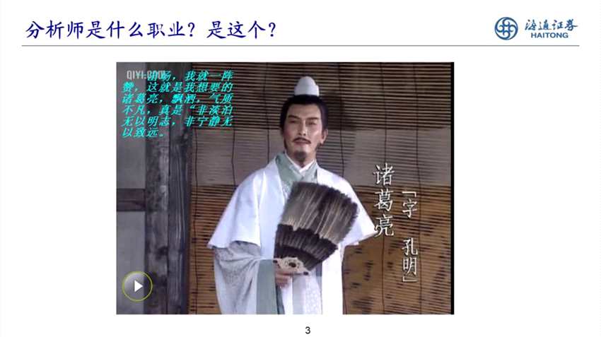 入行11年,經(jīng)常有人問我,分析師是干啥的?我也經(jīng)常思考,分析師到底是什么樣的職業(yè)?雖然從業(yè)11年了,我對(duì)所從事的工作仍感覺如履薄冰。有時(shí)分析師看起來(lái)是這樣的(見PPT第3頁(yè)),像諸葛亮一樣運(yùn)籌于帷幄之中、決勝于千里之外,特別是自己對(duì)市場(chǎng)的判斷對(duì)了之后,是這個(gè)感覺。有時(shí)又覺得分析師是這樣的(見PPT第4頁(yè)),就是個(gè)算命先生,時(shí)而算對(duì)時(shí)而算錯(cuò),尤其是市場(chǎng)的走勢(shì)與自己的預(yù)測(cè)大相徑庭時(shí),總會(huì)懷疑自己。一個(gè)開了十年車的司機(jī)或者干了十年汽車修理的師傅,我們都尊稱為“老司機(jī)”,技術(shù)已經(jīng)很嫻熟了,一般不會(huì)出大錯(cuò),但是在證券行業(yè)做10年哪怕20年,仍然可能犯錯(cuò),而且可能犯大錯(cuò)誤,為什么會(huì)這樣?