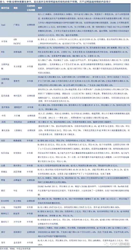 ? 投資策略:情緒邊際修復(fù),建議繼續(xù)增配銀行和保險(xiǎn),短期可適當(dāng)博弈周期。短期市場(chǎng)情緒還是主導(dǎo)因素,中國(guó)的EPU指數(shù)仍然處于相對(duì)高位,而該指數(shù)處于高位時(shí),A股指數(shù)和人民幣往往都會(huì)表現(xiàn)比較疲弱。市場(chǎng)信心還需要一段時(shí)間逐步修復(fù),不過(guò)如果僅從短期看,上周幾個(gè)嚴(yán)重影響市場(chǎng)情緒的因素接下來(lái)都會(huì)得到明顯緩解:1)消費(fèi)板塊強(qiáng)勢(shì)股的補(bǔ)跌意味著賣盤基本已經(jīng)進(jìn)入了一輪熊市的尾聲階段,而我們跟蹤的各細(xì)分行業(yè)龍頭股中報(bào)喜憂參半(詳見正文),并沒有出現(xiàn)系統(tǒng)性低于預(yù)期的情況,情緒釋放后預(yù)計(jì)會(huì)企穩(wěn);2)商務(wù)部在中美爭(zhēng)端中“提前出擊”反而有利于緩和短期的不確定性,原先最大的不確定性是在中國(guó)對(duì)美國(guó)進(jìn)口額有限的情況下(約1500億美元)會(huì)采取什么措施做到“等量”反擊2000億美元的征稅,現(xiàn)在提前敲定600億美元的差額稅率清單,實(shí)際上極大緩解了短期市場(chǎng)的擔(dān)憂(例如有投資者擔(dān)心中國(guó)可能會(huì)對(duì)美資企業(yè)在華的經(jīng)營(yíng)采取制裁等);3)央行將遠(yuǎn)期售匯業(yè)務(wù)的外匯風(fēng)險(xiǎn)準(zhǔn)備金率從0調(diào)整為20%,對(duì)人民幣進(jìn)行逆周期干預(yù),從上一次(2015年)采取類似措施來(lái)看,雖然此舉對(duì)人民幣長(zhǎng)期走勢(shì)不構(gòu)成實(shí)質(zhì)影響,但至少在短期會(huì)穩(wěn)定住加速貶值的預(yù)期。