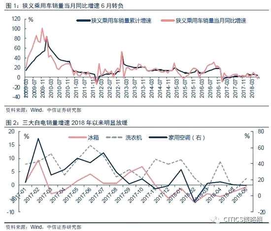 從基本面數(shù)據(jù)來(lái)看,7月各消費(fèi)分支增速相比5-6月確實(shí)有不同程度的放緩,根據(jù)中信證券研究部宏觀組的預(yù)測(cè),7月社銷同比增速預(yù)計(jì)為8.7%,相比9.0%將有放緩,根據(jù)中信證券研究部商貿(mào)零售組的測(cè)算,剔除汽車之后限額以上商品企業(yè)銷售1-2月/3月/4月/5-6月增速分別是7.8%/11.3%/9.5%/10.1%,雖然把汽車和假期錯(cuò)月的影響剔除掉之后,整體增長(zhǎng)仍舊是比較平穩(wěn),但是投資者預(yù)期已經(jīng)在明顯變差(基于消費(fèi)的經(jīng)濟(jì)后周期邏輯)。從微觀跟蹤來(lái)看,傳統(tǒng)汽車、家電的數(shù)據(jù)也不容樂觀,根據(jù)乘聯(lián)會(huì)數(shù)據(jù),狹義乘用車6月銷量同比增速轉(zhuǎn)負(fù)至-3.1%,較5月增速3.9%明顯下滑,根據(jù)產(chǎn)業(yè)在線數(shù)據(jù),18年以來(lái)三大白電銷量增速也在明顯放緩,家用空調(diào)/冰箱/洗衣機(jī)6月銷量同比增速分別為13.2%/-0.6%/2.4%,相比2017年6月的41.5%/4.0%/14.8%大幅度下降。消費(fèi)增速的放緩不僅僅體現(xiàn)在物量消費(fèi)上,部分服務(wù)類消費(fèi)也有邊際趨緩跡象,酒店RevPar7月相比5-6月有所放緩(華住酒店2018Q2 RevPar 203元,同比增長(zhǎng)13.4%,增速與2018Q1基本持平,但是入住率略有下滑),澳門博彩7月增速10.3%相比6月12.5%增速也在放緩。但整體上而言,除了一直負(fù)增長(zhǎng)的傳統(tǒng)汽車領(lǐng)域,其他消費(fèi)分支的放緩程度目前為止并沒有形成擴(kuò)大或者實(shí)質(zhì)性趨勢(shì),7月本身也有世界杯的負(fù)面情緒存在,所以不必因?yàn)槎唐跀?shù)據(jù)就著急給一個(gè)“消費(fèi)下行”的結(jié)論。