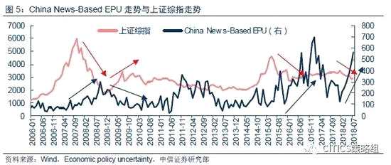 投資策略:情緒邊際修復(fù),建議繼續(xù)增配銀行和保險(xiǎn),短期可適當(dāng)博弈周期投資策略:情緒邊際修復(fù),建議繼續(xù)增配銀行和保險(xiǎn),短期可適當(dāng)博弈周期  短期來(lái)看情緒已經(jīng)成為市場(chǎng)的主導(dǎo)因素,目前困擾市場(chǎng)的仍舊是投資者信心不足。以Economic policy uncertainty index為例,這個(gè)指數(shù)是以代表性新聞報(bào)刊中出現(xiàn)政策相關(guān)性內(nèi)容的文章比重為基礎(chǔ),來(lái)衡量一個(gè)國(guó)家的經(jīng)濟(jì)政策不確定性,從下面兩個(gè)圖中可以看到,當(dāng)這個(gè)指數(shù)處在高位時(shí)(也就是不確定性較高時(shí)),無(wú)論是股市還是匯率都會(huì)受到明顯抑制,而當(dāng)前階段,中國(guó)EPU指數(shù)仍舊很高,說(shuō)明市場(chǎng)對(duì)于宏觀經(jīng)濟(jì)、政策未來(lái)的走勢(shì)還是缺乏信心,需要一定時(shí)間來(lái)恢復(fù)。