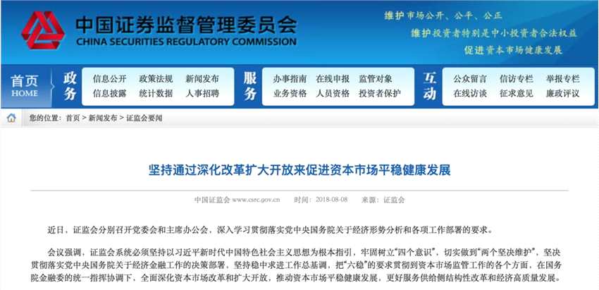 證監(jiān)會“穩(wěn)市場”放大招:深化改革擴(kuò)大開放,依法全面從嚴(yán)監(jiān)管