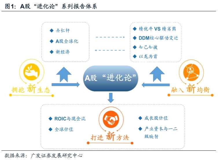 在“A股進(jìn)化論”系列報(bào)告中,我們將通過(guò)十余篇專(zhuān)題厘清A股生態(tài)結(jié)構(gòu)發(fā)生的三大變遷,在相應(yīng)背景下A股投資策略需要做出的適應(yīng)性調(diào)整,以探尋一套新的策略研究框架。(1)變遷之一:緊信用與去杠桿背景之下,A股需要探尋全新的盈利比較方法。原有盈利能力采取ROE的分析方法將受到杠桿率下行的擾動(dòng),而ROIC與現(xiàn)金流分析可以甄別行業(yè)應(yīng)對(duì)去杠桿及緊信用環(huán)境的影響;(2)變遷之二:補(bǔ)短板發(fā)力、獨(dú)角獸回歸,成長(zhǎng)股將面臨“二元分化”,重塑估值理論。炒殼、炒故事的成長(zhǎng)股投資論一去不返,借鑒海外我們需要理解A股成長(zhǎng)股的估值方法,而一二級(jí)市場(chǎng)聯(lián)動(dòng)規(guī)律對(duì)成長(zhǎng)股的產(chǎn)業(yè)映射也將提供啟發(fā)。(3)變遷之三:A股更加融入全球資本市場(chǎng),“知己知彼方能百戰(zhàn)不殆”。在這一背景下,海外投資者將以全球橫向估值比較的視野來(lái)進(jìn)行行業(yè)配置與龍頭擇優(yōu),而海外機(jī)構(gòu)投資者的投資風(fēng)格和交易策略也會(huì)間接影響A股的投資環(huán)境。(4)三大變遷帶來(lái)A股大分化格局:績(jī)優(yōu)股的熊市與績(jī)劣股的牛市,A股仍是“以龍為首”。我們?cè)噲D搭建全新的護(hù)城河理論(成本、渠道、技術(shù))篩選A股的真龍頭。此外,對(duì)比海外經(jīng)驗(yàn)尋找A股科技股龍頭未來(lái)的發(fā)展路徑。