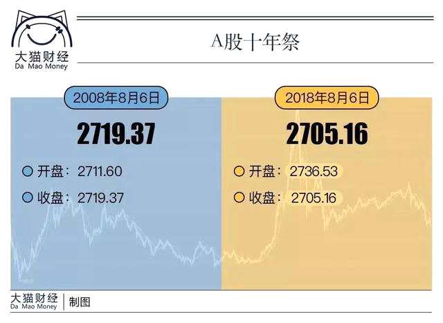 一張圖在股民之間大幅流傳:2018年8月6日,上證綜指收盤2705點。10年前,也就是金融危機(jī)發(fā)生的那一年,2008年8月6日,上證綜指收盤2719點。