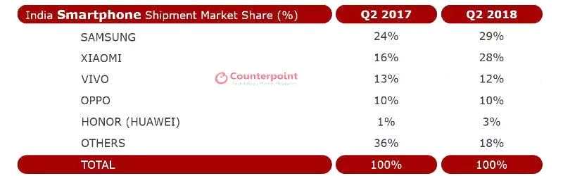 當(dāng)年第三季度,小米以23.5% 成為與三星并列的印度最大手機(jī)廠商;