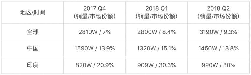 從 2018 年上半年的態(tài)勢(shì)看,小米的逆襲姿態(tài)正在逐漸衰退。為此,小新綜合了 IDC 提供的數(shù)據(jù),以展示出過去半年來,小米在全球、中國以及印度的市場(chǎng)表現(xiàn)。