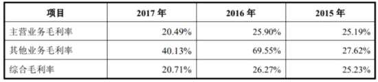 公司2017年度營收增長2.8億,凈利潤(扣非)同比卻下滑30%以上,讓人深思。營收增長,凈利潤下滑,公司的毛利率出了問題。據(jù)披露,公司近三年毛利率情況如下: