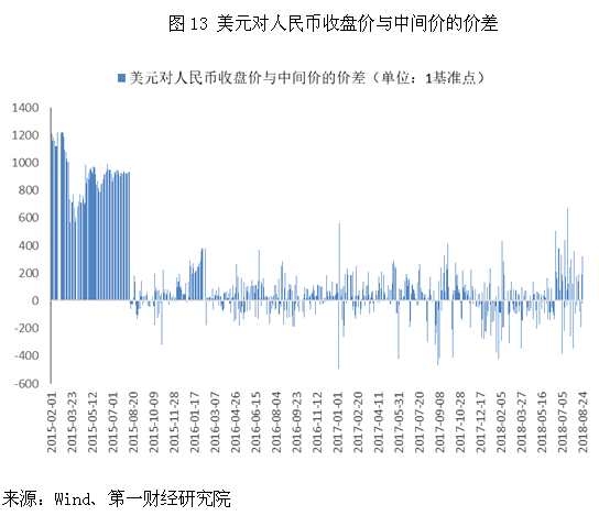 與此同時,央行也備有充足的逆周期宏觀審慎政策工具,以應對外匯市場可能存在的單邊“羊群效應”。8月6日起,中國人民銀行要求金融機構按其遠期售匯(含期權和掉期)簽約額的20%交存外匯風險準備金,相當于讓銀行為應對未來可能出現(xiàn)的虧損而計提風險準備。8月16日,中國央行上??偛客ㄖ笊虾W再Q區(qū)各銀行不得通過同業(yè)往來賬戶向境外存放或拆放人民幣資金,以收緊離岸人民幣流動性,增加做空離岸人民幣的成本(圖12)。8月24日19:28,央行宣布人民幣對美元中間價逆周期因子。隨即離岸人民幣對美元一度升破6.83元關口,最高觸及6.8267元。