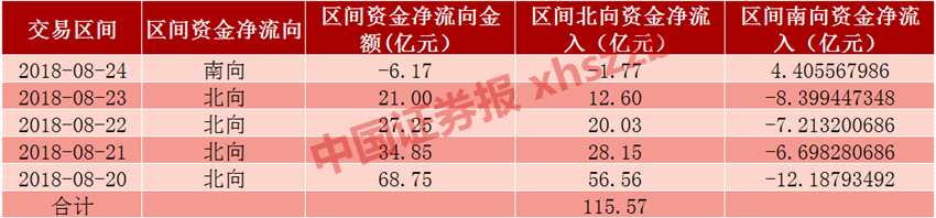 8月20日-8月24日,在市場地量震蕩之際,北上資金逆勢加倉,凈流入115.57億元。