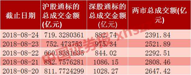 整體來看,8月20日-8月24日,滬、深主要股指震蕩攀升,兩市持續(xù)地量調(diào)整,五個交易日兩市成交額均低于3000億元,地量震蕩之下,滬股通和深股通標的成交顯得活躍。