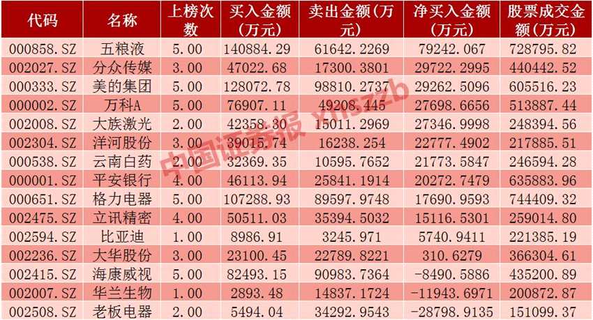 深股通上榜十大活躍成交股