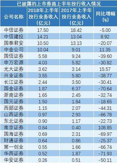 從截至8月28日披露的19家上市券商的半年報來看,中信建投和中金公司投行收入分別達14.21億元和10.04億元,同比保持8.92%和11.35%的正增長。中信證券也實現(xiàn)投行收入17.5億元,同比小幅下跌5%。很多中小券商投行收入則同比大幅下滑。