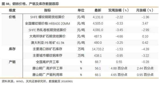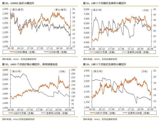 上游資源類:原油價(jià)格回升,EIA原油及石油庫存下降。煤炭主要品種中,動(dòng)力煤價(jià)格8月下持穩(wěn)(秦皇島港口價(jià)623→622);焦煤價(jià)格受下游焦炭價(jià)格提振。需求方面,8月粗鋼產(chǎn)量受限產(chǎn)影響較6、7月有小幅回落;6大發(fā)電集團(tuán)日均耗煤量8月下半月回落至71.64萬噸(7月、8月全月日均分別為79.38萬噸、76.36萬噸,去年8月日均79.66萬噸);庫存方面,國內(nèi)大中型鋼廠煉焦煤可用天數(shù)小幅小幅降至14天,焦炭平均可用天數(shù)降至7.7天;六大集團(tuán)煤炭可用天數(shù)升至23.35天(9月4日)。有色方面,期貨價(jià)格普遍小漲;另外電解鋁庫存8月下繼續(xù)下降,9月3日庫存比8月16日低1.7萬噸。