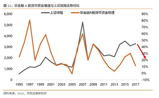上圖展示了1995年以來,市場走勢與ROE的相關(guān)性??偨Y(jié)來看,20年間發(fā)生了4次市場走勢與ROE明顯背離的階段。而這些背離階段都是流動(dòng)性發(fā)生劇烈變化,并占據(jù)了主導(dǎo)地位。