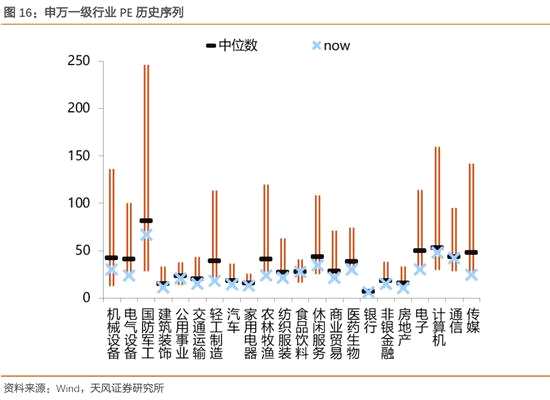 從PE歷史序列來看(除周期),目前各行業(yè)估值均低于12年以來中位數(shù)。