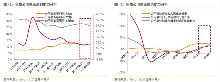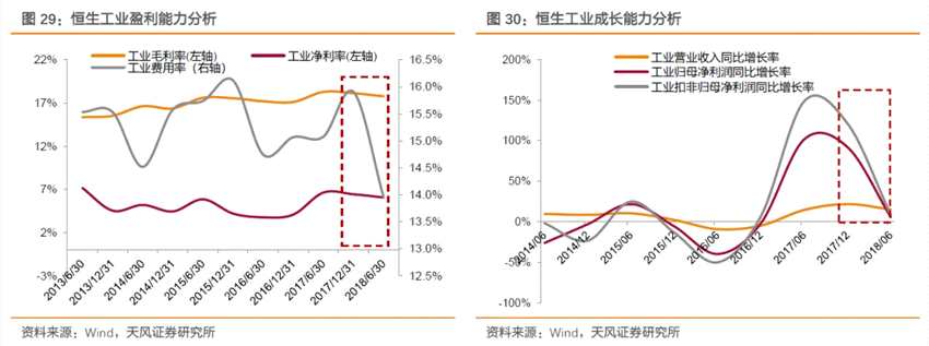 進(jìn)一步對行業(yè)盈利能力進(jìn)行分析,我們發(fā)現(xiàn)大部分恒生行業(yè)凈利潤率的提高伴隨著成本端與費(fèi)用端的雙重改善。18年中報(bào)數(shù)來看,大部分恒生行業(yè)的凈利潤率與毛利潤率均較17年年報(bào)及上半年同期水平有明顯提升,而期間費(fèi)用率(包括管理費(fèi)用、銷售費(fèi)用、財(cái)務(wù)費(fèi)用及其他費(fèi)用)也表現(xiàn)出明顯的下行趨勢。具體數(shù)據(jù)來看,18年上半年綜合業(yè)、地產(chǎn)建筑業(yè)、公用事業(yè)在各恒生行業(yè)中凈利潤率相對領(lǐng)先,分別為13.73%、13.42%、12.18%,較17年年報(bào)提升了1.11、1.51、1.00個(gè)百分點(diǎn),同時(shí)其毛利潤率相對于17年年報(bào)也分別提升了1.13%、2.82%、0.45%,成本端存在明顯改善。我們并沒有從上市公司的中報(bào)數(shù)據(jù)中看到原材料漲價(jià)對中下游企業(yè)利潤率的明顯擠壓,僅恒生工業(yè)利潤率出現(xiàn)一定程度下滑。進(jìn)一步比較期間費(fèi)用率,發(fā)現(xiàn)其期間費(fèi)用率均較17年年報(bào)也有所改善,綜合業(yè)、地產(chǎn)建筑業(yè)、公用事業(yè)分別降低0.17、1.08、3.2個(gè)百分點(diǎn)。