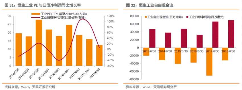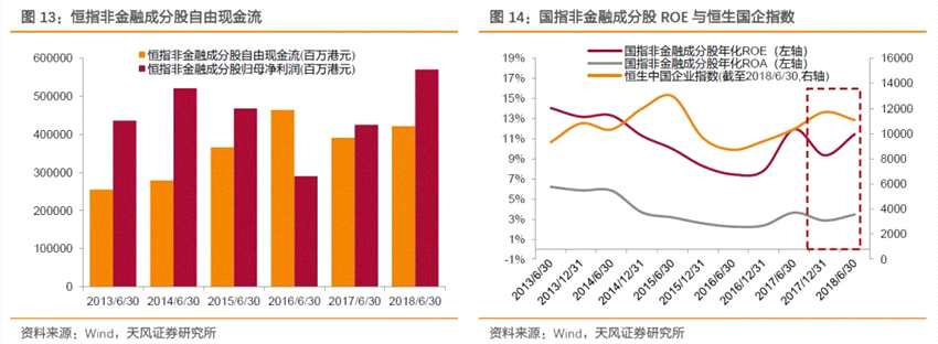 自由現(xiàn)金流方面來看,18年上半年港股非金融企業(yè)自由現(xiàn)金流明顯改善,但經(jīng)營性現(xiàn)金流或?qū)⒊袎?。港股非金融企業(yè)自由現(xiàn)金流的改善并非因?yàn)榻?jīng)營性現(xiàn)金流(OCF)的提升,而是源于資本性支出(CE)的大幅下降。需求端的萎縮導(dǎo)致經(jīng)營現(xiàn)金流惡化,但對未來需求不確定性的擔(dān)憂,疊加供給側(cè)改革和環(huán)保限產(chǎn)的作用,使得企業(yè)資本性開支明顯收緊,導(dǎo)致企業(yè)自由現(xiàn)金流向好。