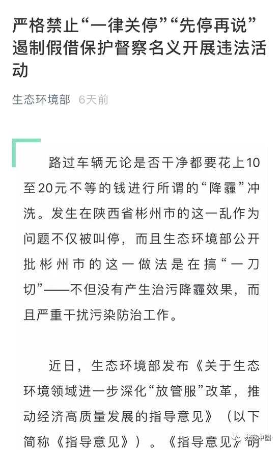 早在8月31日生態(tài)環(huán)境部就各地大氣治污發(fā)聲,就將京津冀及周邊地區(qū)細顆粒物(PM2.5)平均濃度同比下降幅度從去年的5%調降至最新的3%左右。其次是在5號生態(tài)環(huán)境部在官方微信公眾號頭版頭條刊登出《嚴格禁止‘一律關停’‘先停再說’遏制假借保護督察名義開展違法活動》一文,文中措辭異常嚴厲。
