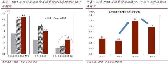 ?過去三個季度,消費信貸增長大幅放緩,加劇了短期消費需求的下行壓力。其中,一些此前受消費貸提振的消費品類所受的負面沖擊最為顯著[1]。2018年上半年,銀行及非銀渠道的消費貸款凈增量均較去年同期明顯縮減;這意味著驅(qū)動2017年消費增長的重要因素之一——消費相關(guān)“杠桿”的上升將不復(fù)存在。