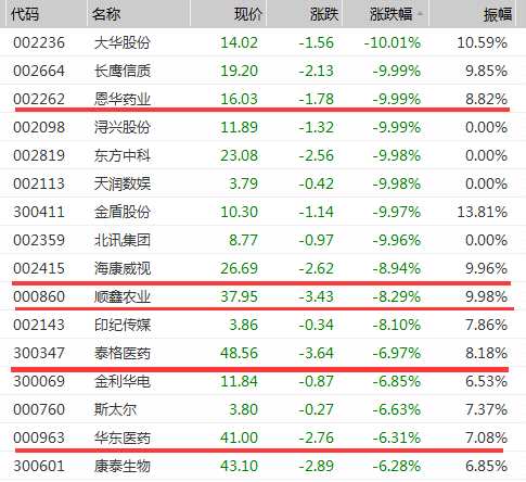 9月12日(周三),這個(gè)“蘿卜蹲”的游戲玩到了白馬股的頭上。盤中,白馬股全線殺跌,恩華藥業(yè)封跌停,大華股份大跌近9%,??低暤?%,順鑫農(nóng)業(yè)、涪陵榨菜、華東醫(yī)藥、愛爾眼科等多只高位股紛紛重挫。