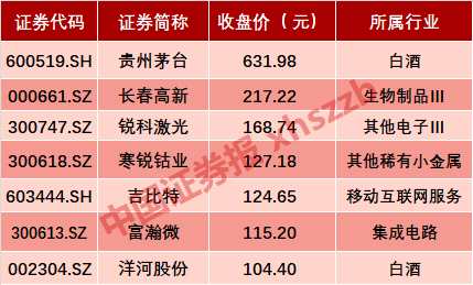 7只百元股名單(以9月13日收盤價(jià)計(jì)算)