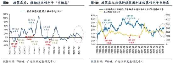 “市場底”出現(xiàn)的第二個(gè)時(shí)機(jī)需要看到“政策傳導(dǎo)的經(jīng)濟(jì)效果”,雖然代表產(chǎn)出的經(jīng)濟(jì)數(shù)據(jù)可能仍處于慣性下滑,但代表信用傳導(dǎo)疏通的指標(biāo)會率先改善,如M1與社融增速回升、低評級信用利差回落、基建企穩(wěn),均是投資者確認(rèn)政策效果的有利信號,歷史上05、08、12年“市場底”也出現(xiàn)在上述信號改善之后。對上述信號持密切觀察的態(tài)度,是市場仍在磨合等待的重要原因。