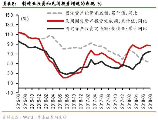 1-8月固定資產(chǎn)投資累計(jì)同比+5.3%較前值繼續(xù)小幅下滑,制造業(yè)投資累計(jì)同比+7.5%表現(xiàn)仍然穩(wěn)健,基建投資累計(jì)同比+4.2%繼續(xù)呈現(xiàn)回落,地產(chǎn)投資累計(jì)同比+10.1%小幅回落。我們認(rèn)為7月底政治局會議明確了下半年積極財(cái)政政策要更加積極,依靠基建投資逆周期對沖經(jīng)濟(jì)下行壓力的導(dǎo)向。由于地方政府當(dāng)前對擴(kuò)大財(cái)政基建支出的積極性有限,8月基建投資暫未呈現(xiàn)反彈。我們將全年基建投資增速預(yù)測修正到10%左右,維持在中期策略報(bào)告中對于放松基建的順序“先中央后地方,先鐵路后公路”的判斷。