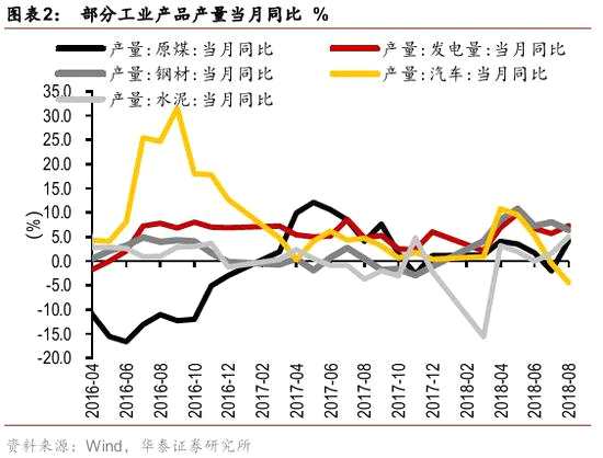 8月工業(yè)增加值當(dāng)月同比為+6.1%,略高于前值(+6%)。但1-8月工業(yè)增加值累計(jì)同比增速低于去年同期,7-8月工業(yè)生產(chǎn)數(shù)據(jù)整體表現(xiàn)較弱,印證經(jīng)濟(jì)仍存在下行壓力。工業(yè)增加值結(jié)構(gòu)當(dāng)中最主要的成分——8月制造業(yè)增加值增速同比+6.1%,增速較前值繼續(xù)回落0.1個百分點(diǎn),其中通用設(shè)備、電氣機(jī)械、汽車制造業(yè)增速下滑較為明顯,生產(chǎn)端對應(yīng)到需求側(cè),與基建增速暫未反彈的弱勢表現(xiàn)相印證,證明經(jīng)濟(jì)增長仍存在下行壓力。