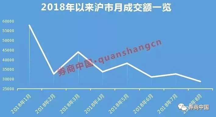 1、成交低迷,創(chuàng)4年新低。8月份滬市成交額跌破3萬億,為28729.73億元,創(chuàng)下了4年新低。