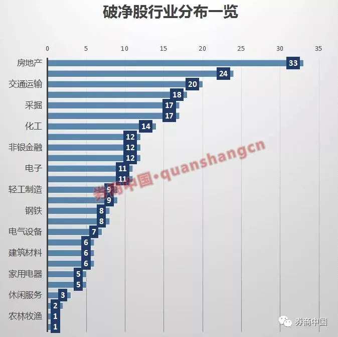 從破凈股行業(yè)分布來看,破凈股數(shù)量最多的六個(gè)行業(yè)分別是房地產(chǎn)(33只)、公用事業(yè)(24只)、交通運(yùn)輸(20只)、銀行(18只)、采掘(17只)、汽車(17只)。
