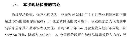中泰證券出具的《關(guān)于亞振家居股份有限公司業(yè)績虧損且營業(yè)利潤同比下降50%以上之專項現(xiàn)場檢查報告》顯示,亞振家居中報利潤下滑的主要原因是,以亞振家居為代表的中高端家居家具產(chǎn)品市場表現(xiàn)欠佳,以及公司現(xiàn)階段正在加強品牌建設(shè)投入力度,導致銷售費用及相關(guān)管理費用增幅加。