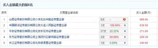 盤后龍虎榜顯示,成交放量,但未見大手筆的買入席位,買一的成交額為688.66萬元,買三到買五成交額各有200多萬元。