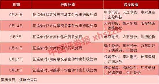 下表是8月份以來,證監(jiān)會針對操縱市場、內(nèi)幕交易等做出的行政處罰情況。