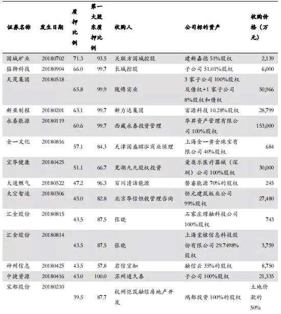 第三是互聯(lián)網(wǎng)獨角獸。案例1)阿里和騰訊A股公司大買方。6月,騰訊出資約3億元受讓常山北明股東部分資管份額,對應(yīng)公司2.24%股份。而常山北明的控股股東質(zhì)押比例當(dāng)時為18%,雖然顯得不高,但在與騰訊合作公告日前后也有頻繁補充質(zhì)押和解押,緩解資金壓力。7月中旬,阿里系也151億元戰(zhàn)略入股分眾傳媒,合計持股超過10%,成為僅次于江南春的第二大股東。2)五八集團姚勁波頻繁收購優(yōu)質(zhì)資產(chǎn)。入股“我愛我家”:6月22日,五八集團從我愛我家的股東“和兆玖盛、漢鼎世紀(jì)和西藏盛鉅”手中協(xié)議轉(zhuǎn)讓獲得總股本8.28%的股份,轉(zhuǎn)讓價格為7.12元/股,交易總額高達10.68億元。而我愛我家的股價從年初到交易日已跌了近23%,而且當(dāng)時公司質(zhì)押比例有36%,第一大股東質(zhì)押比例更是高達96.84%。交易之后,我愛我家陸續(xù)發(fā)布了5次控股股東解質(zhì)押的公告,目前實際控制人質(zhì)押股份占其所控制的股份仍有高達84%。入股“龐大集團”:7月5日,龐大集團(中國汽車銷售服務(wù)龍頭)的5位控股股東一致行動人將全部股份轉(zhuǎn)讓給五八集團,股份占比5.5%。而龐大集團年初至今跌幅也近30%,交易當(dāng)時的公司質(zhì)押比例有34%,第一大股東質(zhì)押比例更是高達99.97%。