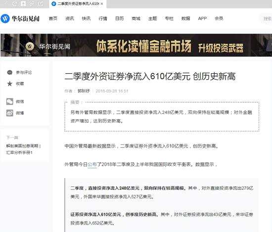 今日晚間,還有一條消息令火山君(微信公眾號:huoshan5188)感到震撼。據(jù)報道,外管局今日公布了2018年二季度及上半年我國國際收支平衡表。數(shù)據(jù)顯示,證券投資凈流入610億美元,創(chuàng)季度歷史新高。